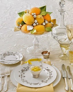 Otra opción que me gusta mucho es el utilizar fruta fresca para nuestros centros de mesa, y que esté combinada con velas y otros elementos. Da un ambiente fresco y natural a la mesa.