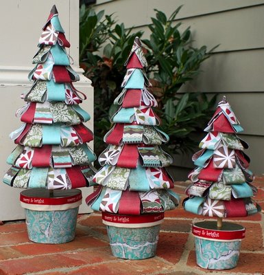 Con un material tan simple como es el papel reciclado podéis hacer unos arbolitos de papel tan chulos como estos, ideales para decorar una esquina del salón o para centro de mesa.