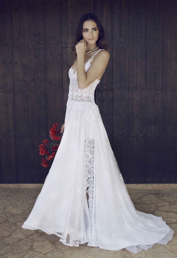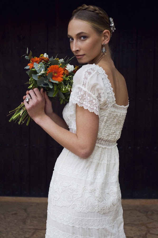 Romántica, natural y muy bohemia. Esta colección es la perfecta conjunción de sencillez y sofisticación con un toque hippy que enamorará a todo los espíritus libres que buscan una boda diferente, bohemia y familiar. La puntilla se combina con flores bordadas y pequeñas transparencias creando siluetas más libres y bohemias.
