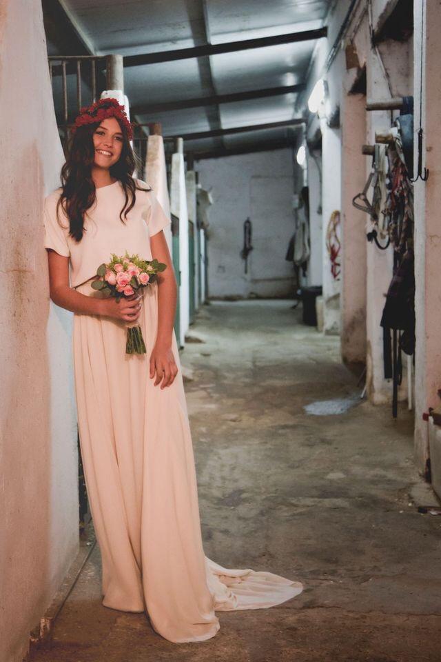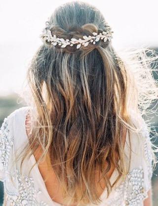 La novia suele caracterizarse por llevar el pelo suelto, ondulado o con algún recogido o semirecogido con trenzas despeinadas y desestructuradas. Los complementos predominantes, son las coronas de flores, adornos o peinetas doradas. Y escoge un maquillaje muy natural, nada cargado.