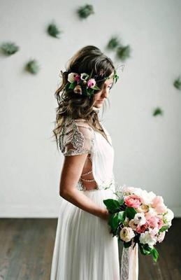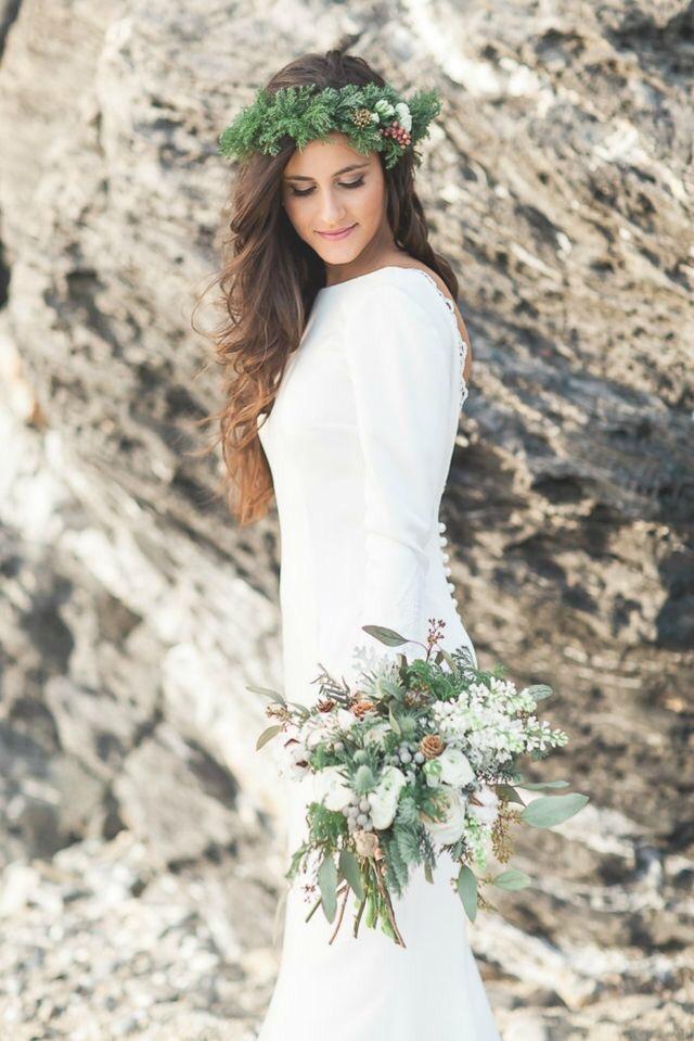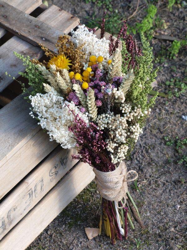 El bouquet compuesto por flores silvestres, como rosas, margaritas, ramas de olivo o espiga, ranúnculos, craspedias, skimmia, ornitogallum, lisianthus, freesias, brunia, eucalipto, astilbe, echeverias, escabiosa y brunia. Están entre las más elegidas.