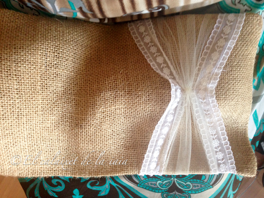 llega el turno de cerrar el cojín de algodón, introducirlo en la funda de arpillera y cerrarlo con punto escondido