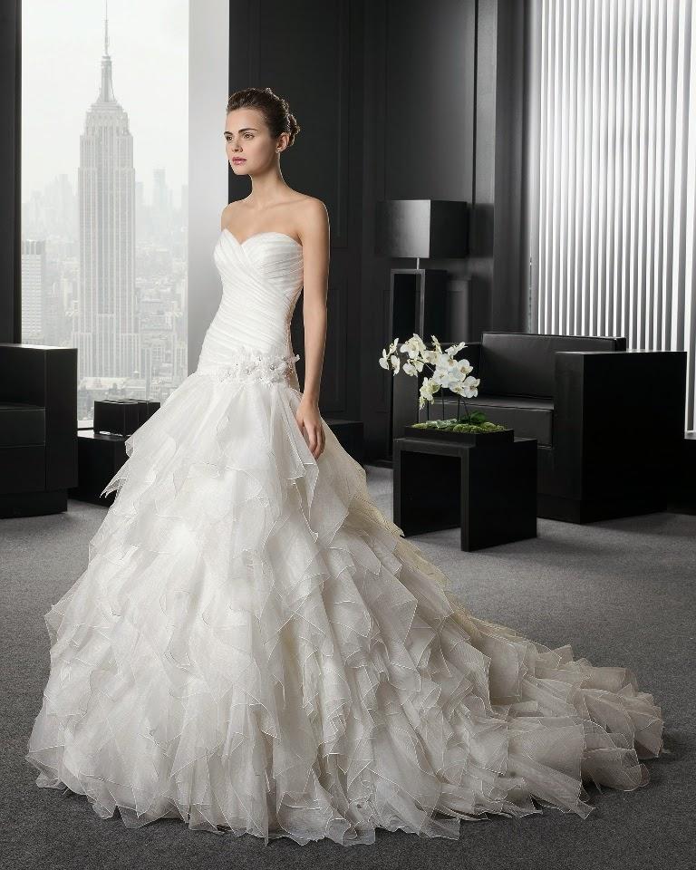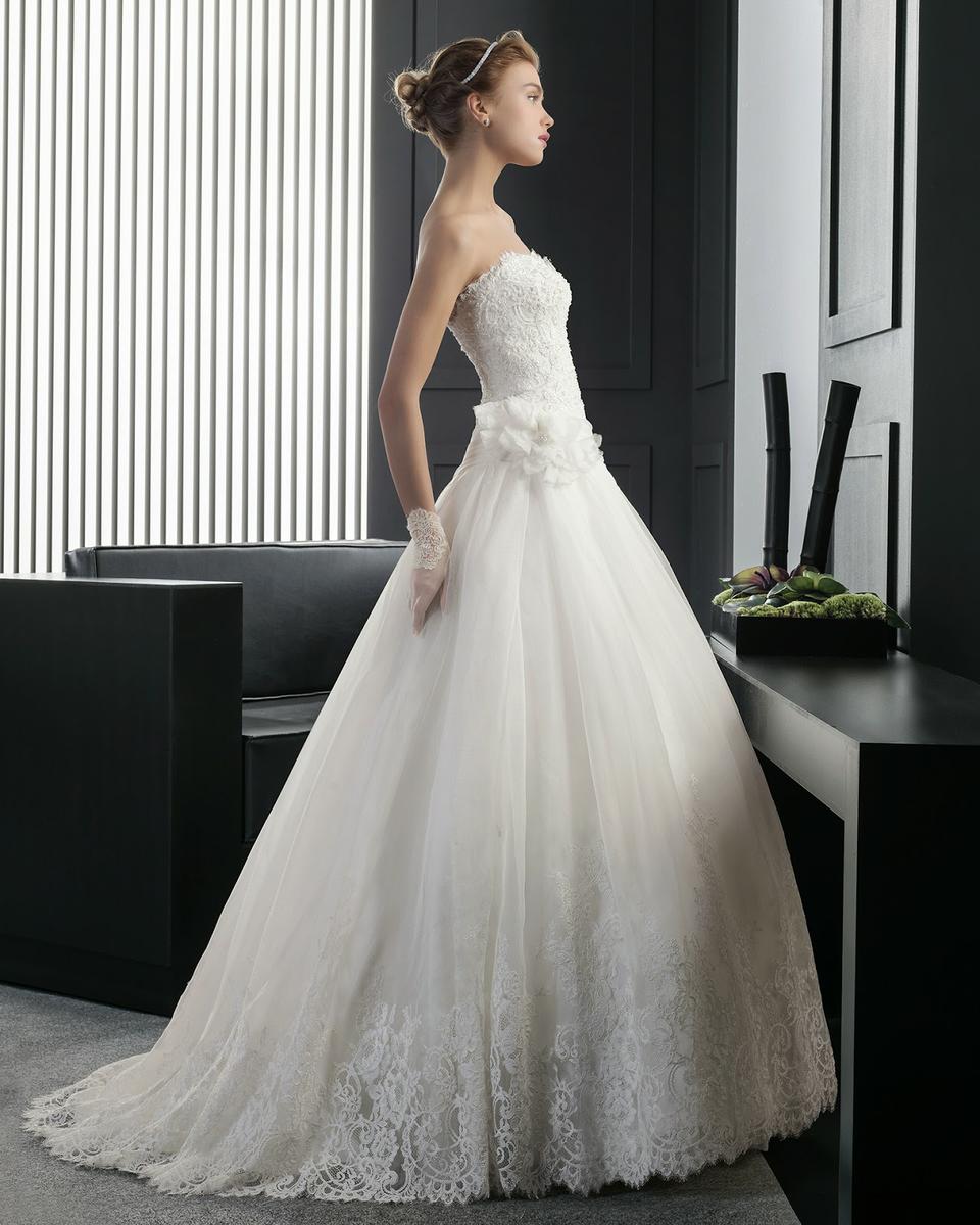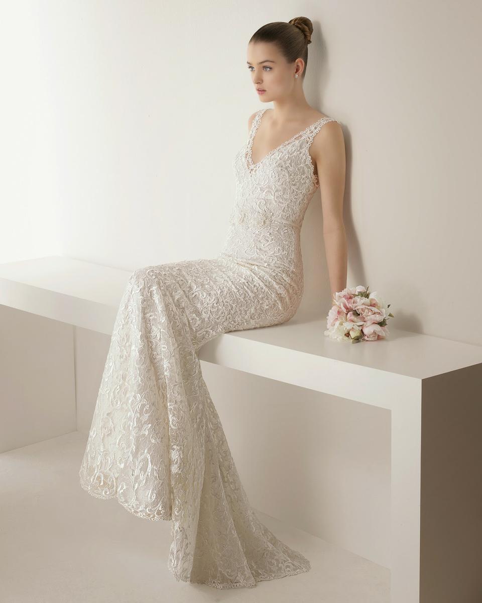 Destacan los trajes cortos y largos de diferentes volúmenes y tejidos naturales como la organza, el tul o el punto de seda que dibujan la silueta de una mujer moderna, delicada y cosmopolita. Escotes espectaculares en espaldas con transparencias, bordados realizados con sutiles pedrerías y nuevas interpretaciones del clásico encaje conforman la colección 2015 de Rosa Clará.