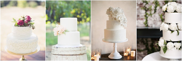 Una opción muy común es el blanco, color muy presente en las bodas, destaca por su elegancia y sencillez, siempre podéis decorar este tipo de tartas con alguna flor natural de color.