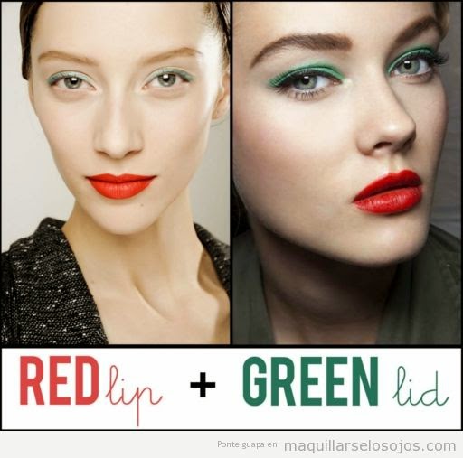 - MAQUILLAJE COMPLEMENTARIO: Aplicaríamos verde (y sus engamados) con su color complementario (y sus engamados). El complementario es aquel que hace que ambos colores se resalten al máximo el uno al otro, en el caso del verde serían los rojizos. Siempre lo encontraremos situado enfrente del elegido en el círculo cromático.