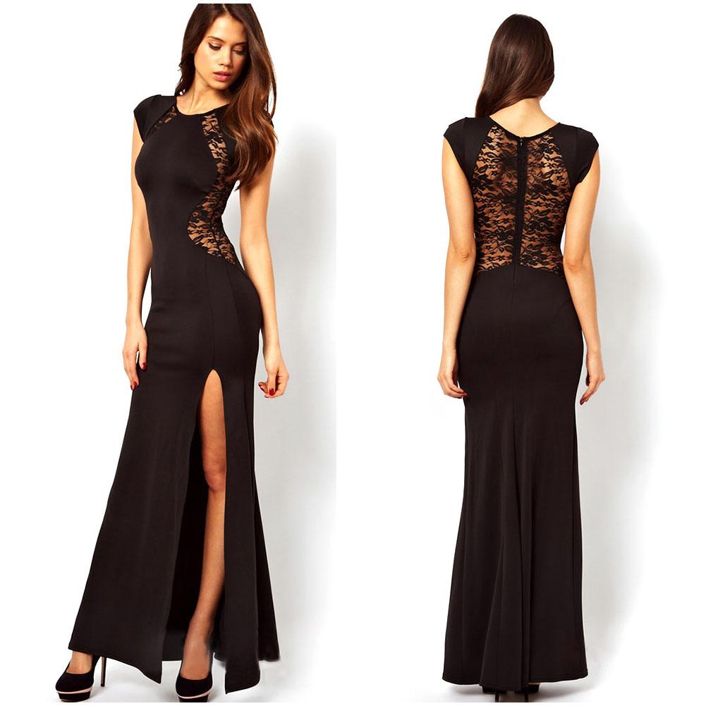 Para las amantes del encaje también tenemos una alternativa. Un vestido de falta larga, muy ajustado al cuerpo, que marque la silueta y encaje en la espalda para darle más sensualidad.
