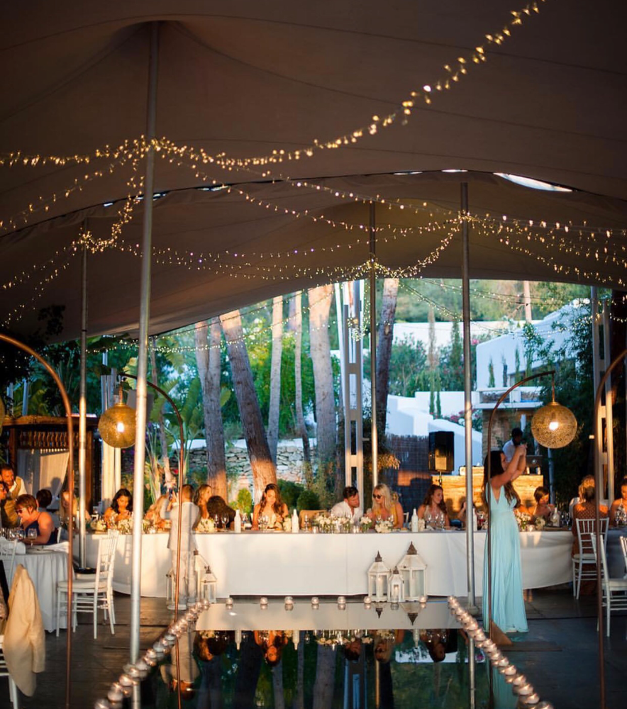 Las mesas rectangulares o imperiales, colocadas en un lateral, son ideales para poder ver a todos los invitados, aunque la interacción entre los comensales se verá limitada a la persona que tengan al lado.