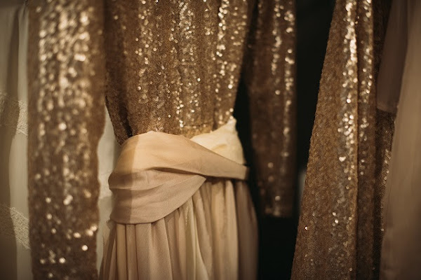 Diseño que juegan al despiste, faldas de gasa desmontables transformadas en mono de pailletes.
