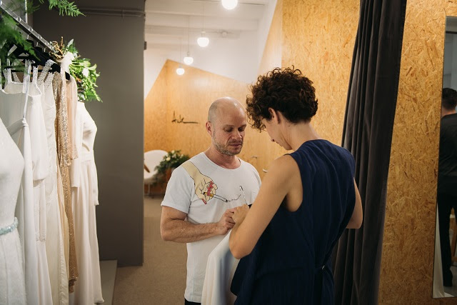 Vestidos y complementos personalizados, donde las novias disfrutan en vivo del proceso de confección textil de su vestido. Diseñando tu vestido desde cero.