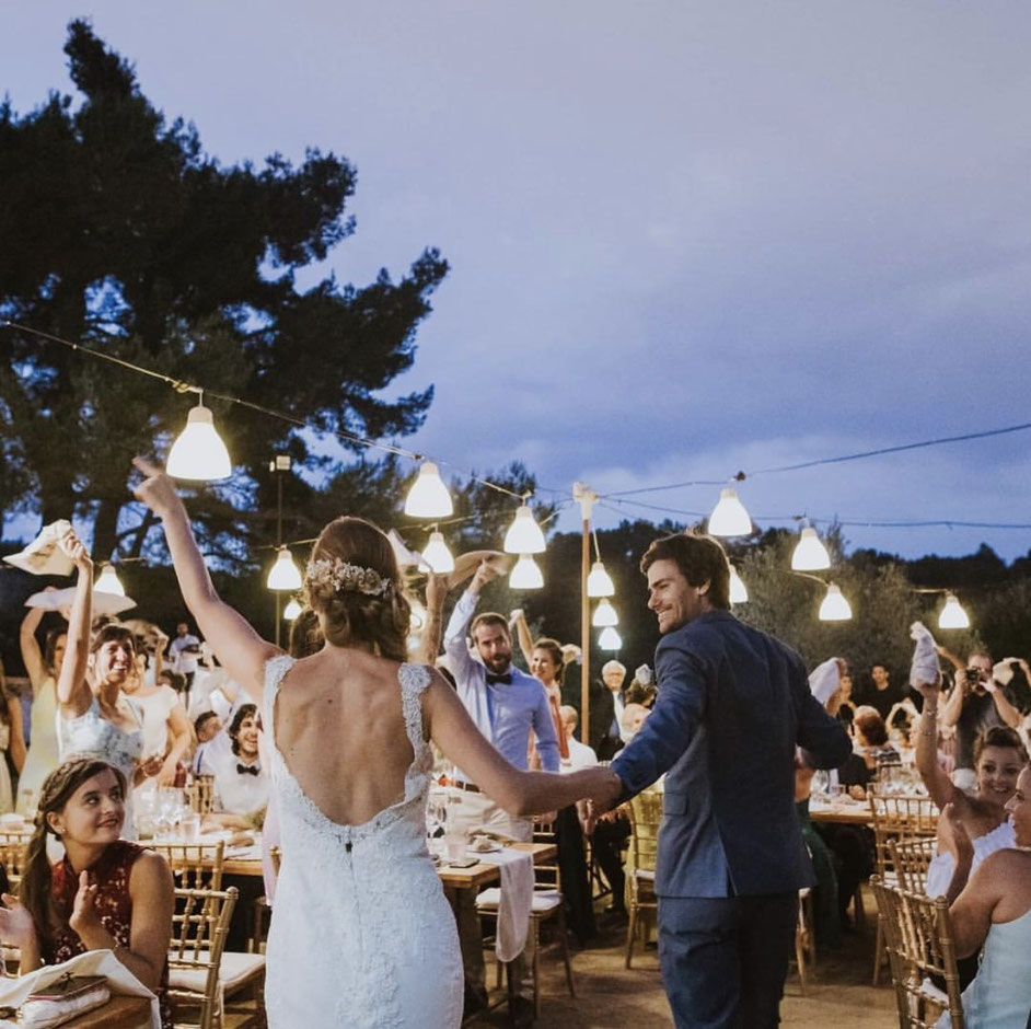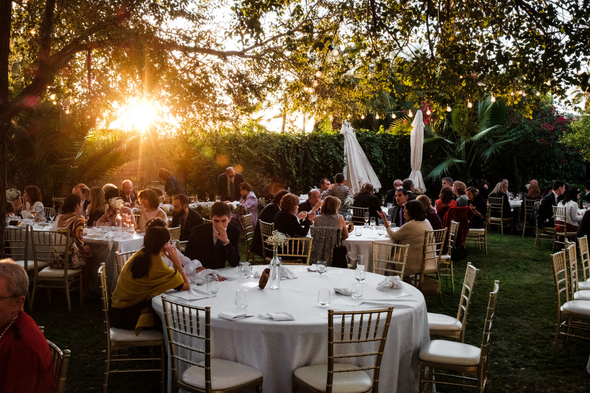 Antes que nada tenéis que tener muy claro si las mesas serán alargadas (imperiales), redondas o cuadradas y la capacidad de cada una. También podéis pedir, si es necesario, diferentes tamaños, para poder crear algunos grupos más grandes y en otras más reducidos, o incluso combinar diferentes tipos de mesa. Por ejemplo puedes utilizar una imperial para sentar a un grupo de amigos en el cual hay dos personas que no se llevan bien, y no quieres dejar a ninguna de ellas separadas del resto. En este caso puedes ubicar a cada una en un extremo y no tendrán necesidad de verse.Fotografía de Estudi de Llum