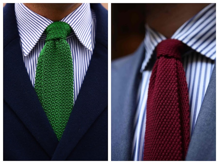 Aunque puedan parecer todas iguales, las corbatasse diferencian por los distintos tipos de nudos. La elección de un tipo de nudo u otro va a depender de las características del cuello de la camisa y del efecto que se quiera conseguir con ella (estilizar el cuello, darle un toque más o menos moderno al traje, etc). La peculiaridad de éstas corbatas es que no tienen entretela por lo que no son rígidas. Tienen un contorno cuadrangular y una pala recta de unos 7cm por lo que se suele usar con un nudo simple.