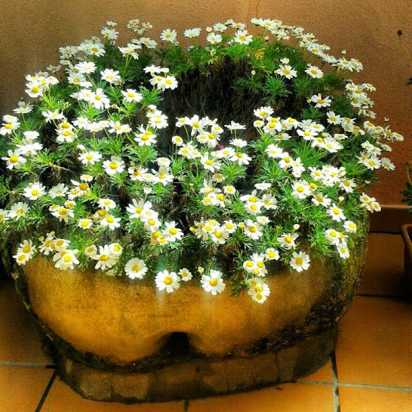 En tierras extremeñas nos topamos con este antiguo pilón repleto de margaritas, sencillo y dispuesto a alegrar cualquier rincón de nuestra terraza o jardín
