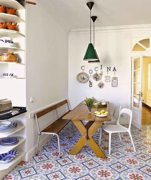 Las baldosas hidráulicas en los suelos de cocinas, baños, dormitorios ó zonas de paso son un "revival" que ha vuelto con fuerza. Combinadas con otros elementos decorativos de actualidad da lugar a una resultado excepcional