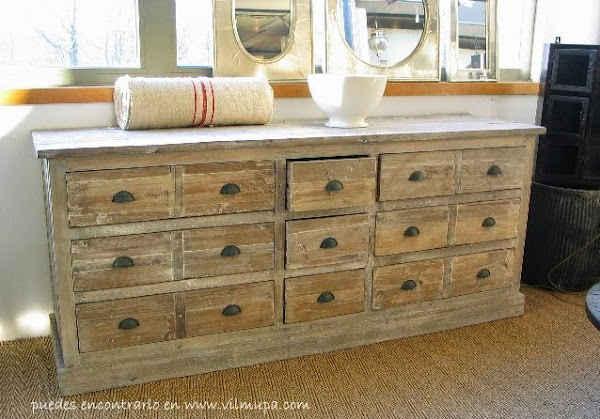 Los muebles y aparadores con muchos cajones y tiradores "estilo arquitecto"