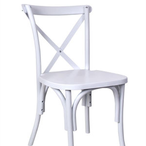 Después de mucho tiempo, siendo la más popular, la silla Tiffani da paso a la Cross Back Chair, que se ha convertido en la silla más demandada, pues es una silla con un línea muy clásica, con estilo rústico, que se presenta en una amplia gama de colores, lo cual la hace muy personalizable en cuanto a la decoración, dependiendo del lugar y estilo que elijas para la celebración.