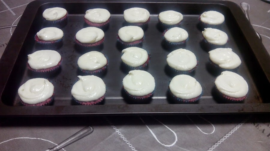 Como podéis ver en las fotos el cupcake queda de color rojo y después viene la buttercream o cobertura que va encima.