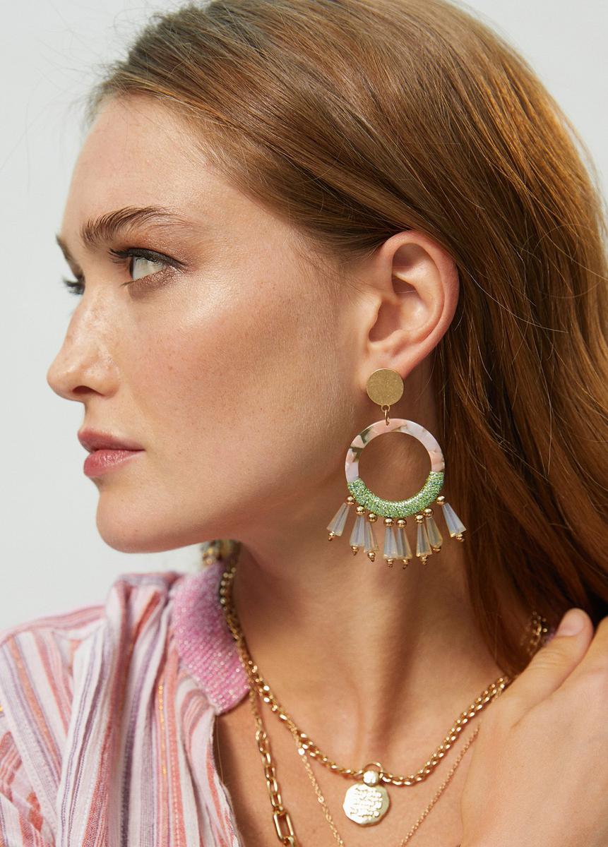 Si quieres que tus pendientes vayan a juego con el look, puedes optar por unos aros o pendientes a todo color, nada de opciones clásicas como las perlas, mejor optar por versiones más juveniles.