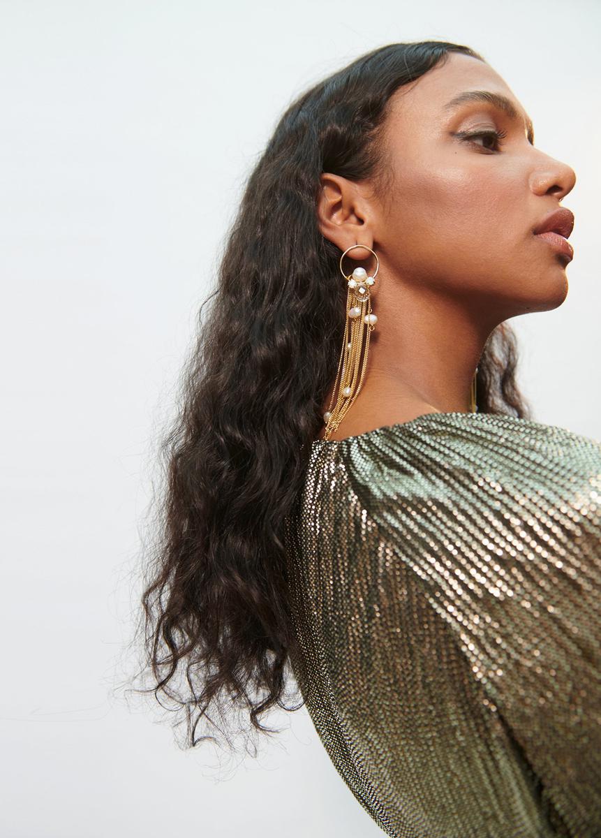 En este caso, tienes que acompañarlos con unos complementos y unas joyas adecuadas. Por ejemplo, con unos pendientes trepadores o pendientes con formas geométricas que capten la atención de las demás invitadas.