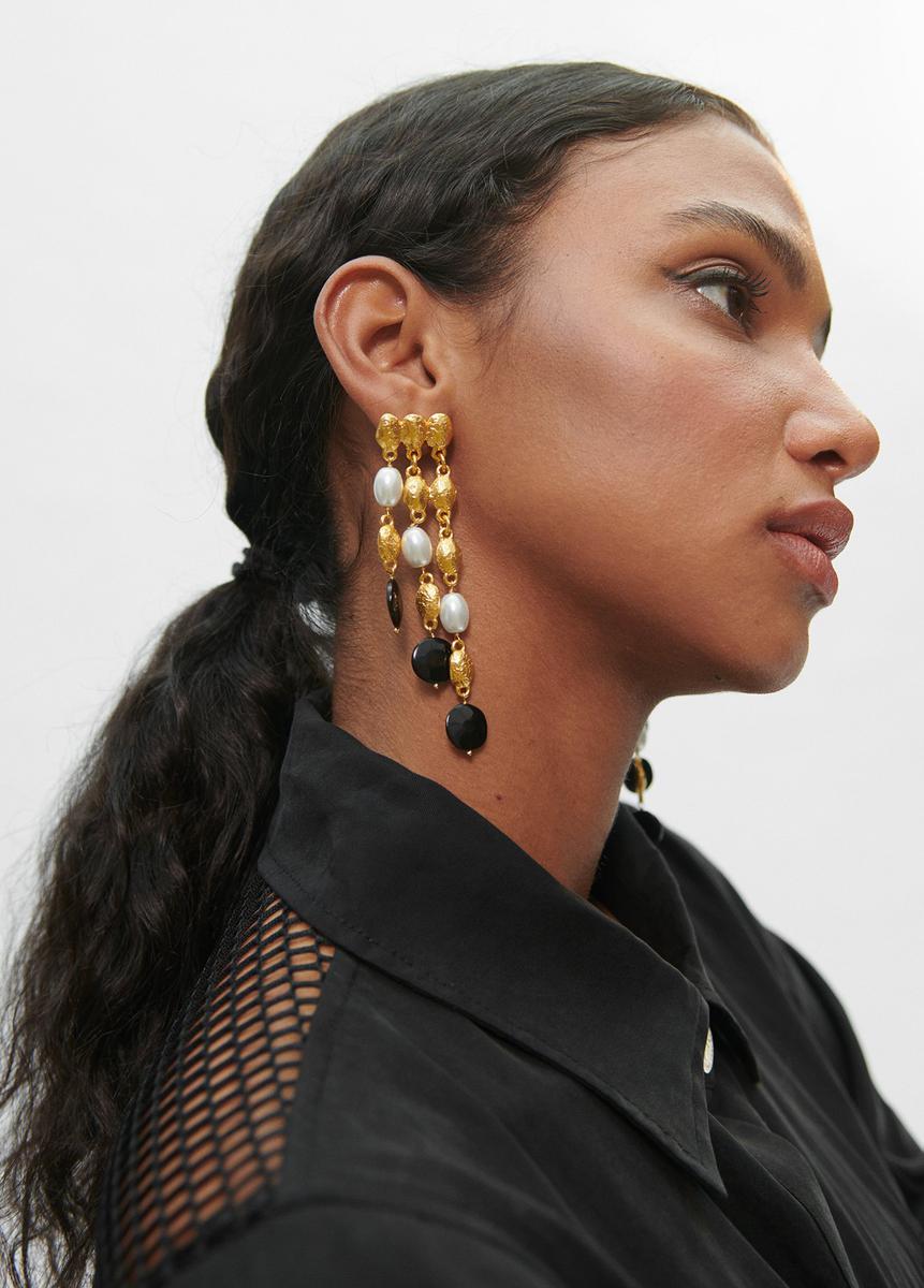 En este caso es el momento de apostar por pendientes grandes y llamativos que consigan darle un toque de color a tu look, las opciones de Lola Casademunt nos permite dejar volar la imaginación con sus pendientes a todo color, con formas de floreso geométricas.
