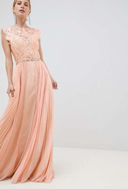 De Asos hemos seleccionado dos. El primero, en un tono melocotón pálido, es de falda plisada y cuerpo bordado. ¡Muy juvenil!