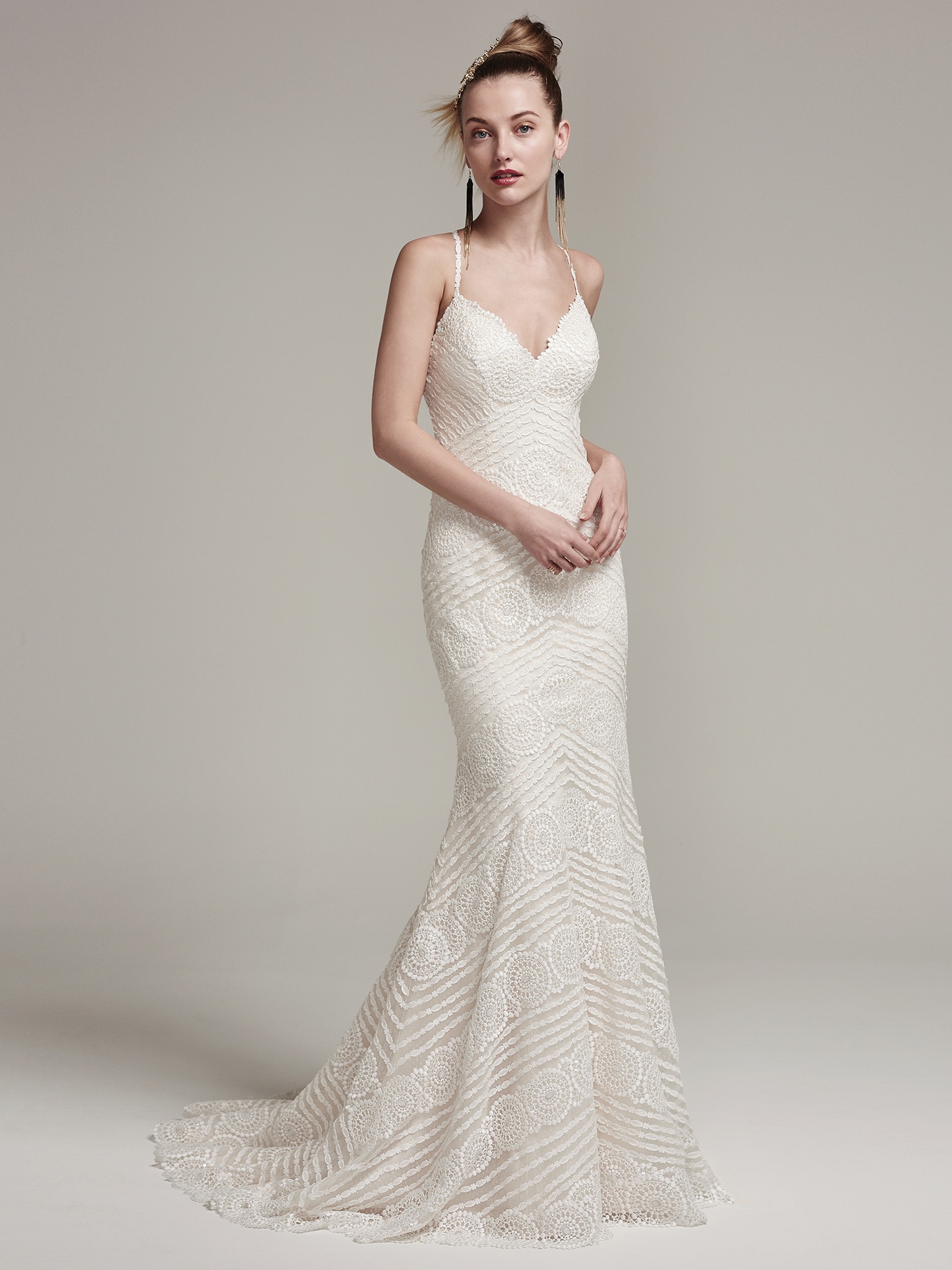 El vestido es, sin duda alguna, la parte más importante del look de una novia. En el estilo boho estos se caracterizan por tener cortes tipo A, rectos, trompeta y sirena. Aunque hay modelos cortos e incluso de dos piezas. ¡Estos son algunos ejemplos!Con encaje y bordados.