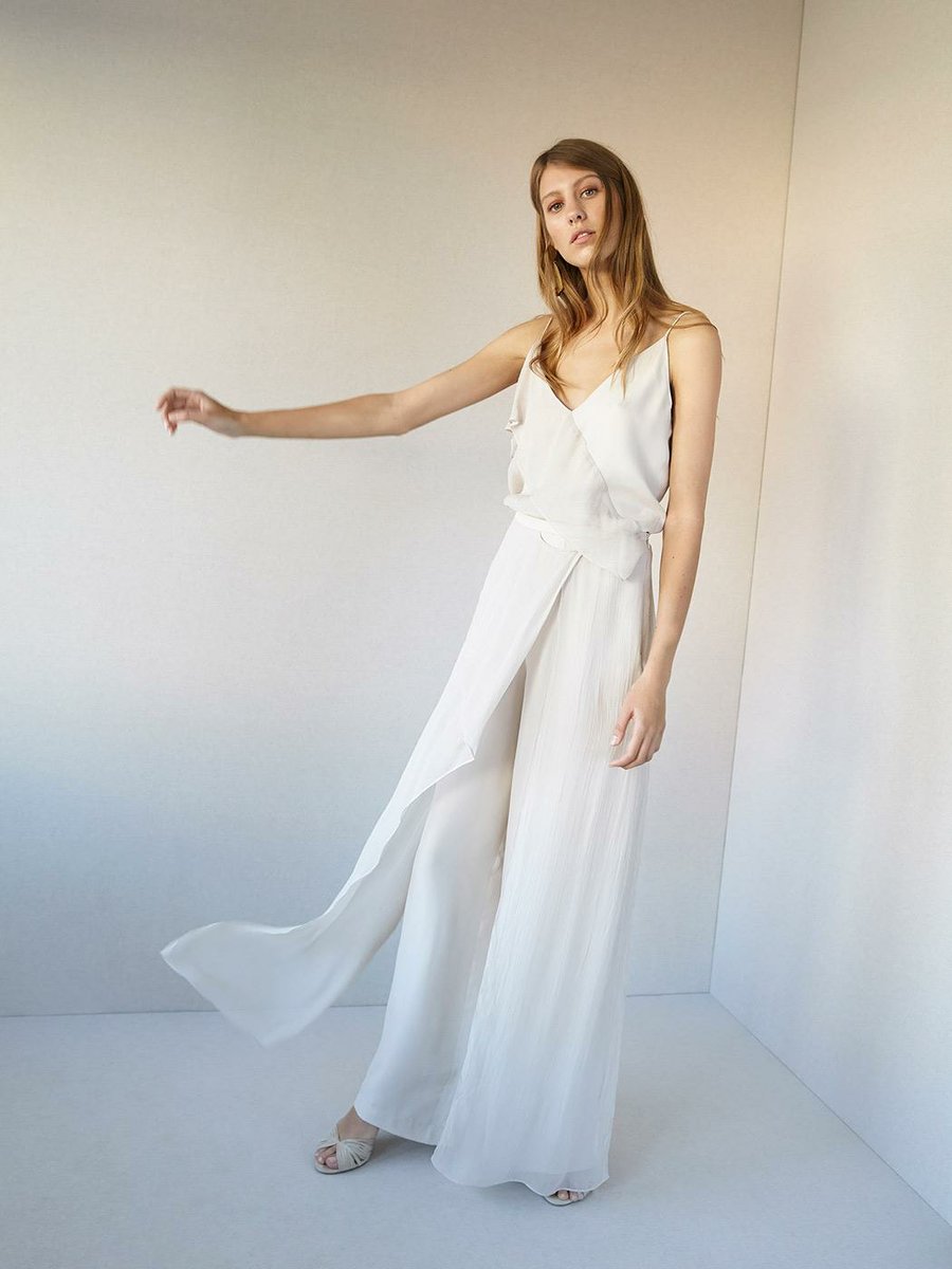 Te encantan los vestidos de novia, pero seamos sinceras, tú no quieres ir de la manera tradicional. Dí el sí quiero en pantalones. Más cómoda que nadie y muy moderna. Eso sí, el blanco sigue siendo imprescindible. A demás, con un poco de suerte serás de las pocas personas que pueda reutilizar su vestido de novia.