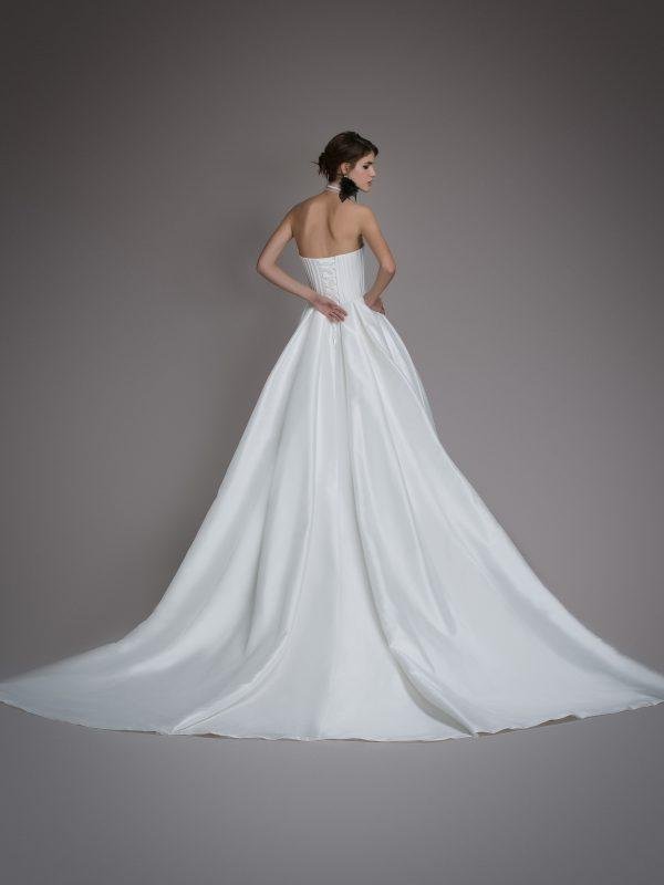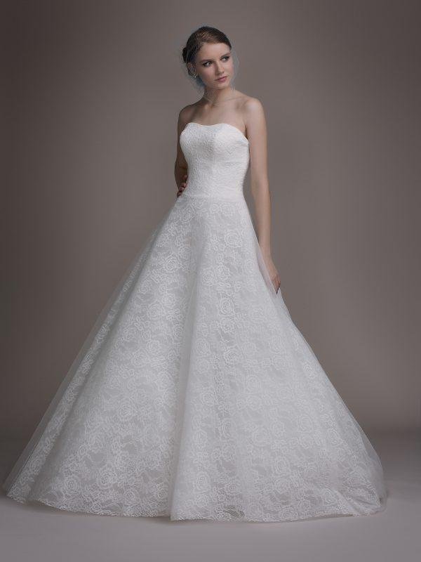 Se le conoce como Ball Gown, de cuento de hadas o tipo Cenicienta. Se trata por lo general de corpiños ajustados y falda con enaguas que comienza en las caderas. Si tienes la suerte de tener bien marcadas las caderas, o tu cuerpo tiene la forma de una pera, te verás genial con él puesto.