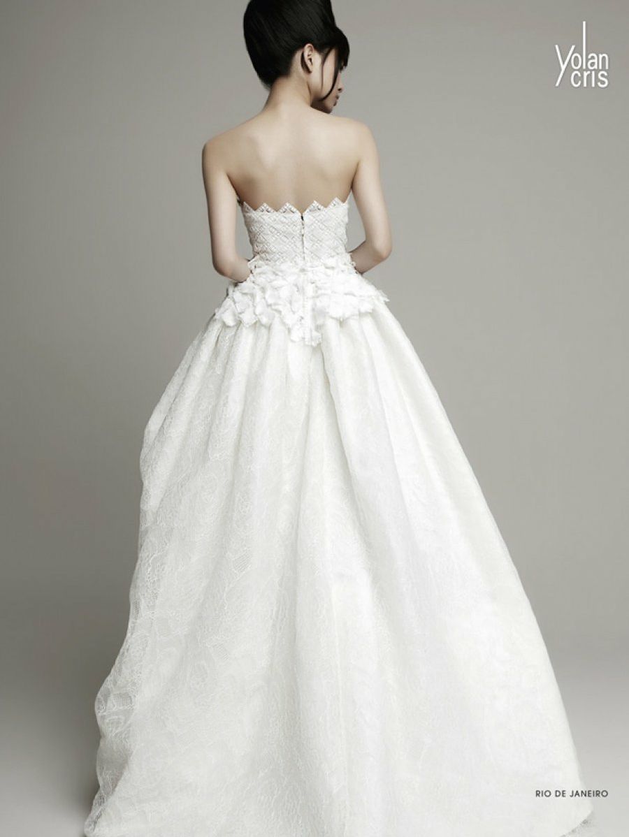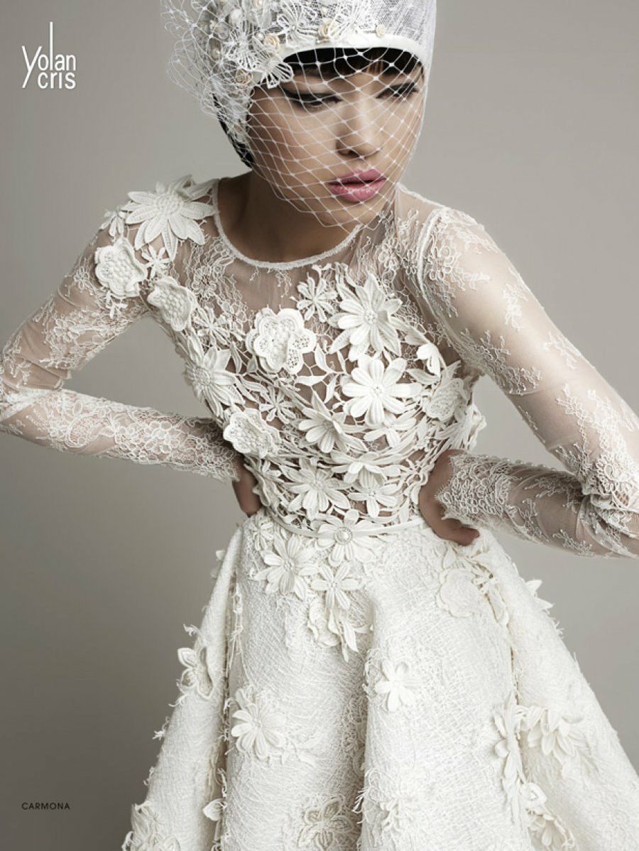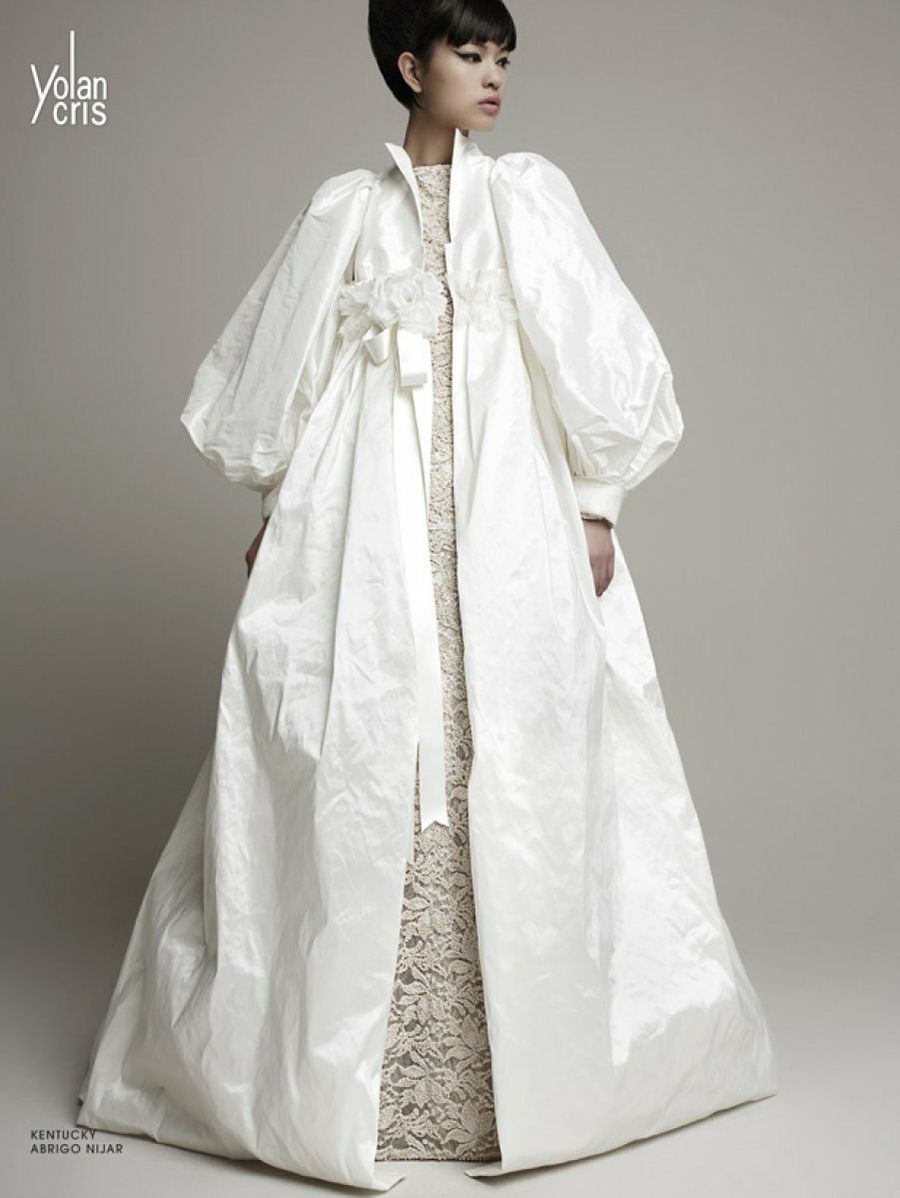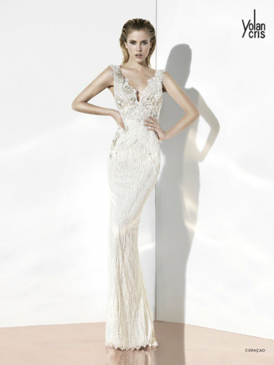 Predominan en esta colección, las transparencias y brocados, las siluetas marcadas, ajustando la cintura, la sensualidad, gracias al encaje y al estilo lencero. Desde luego, son vestidos hechos para mujeres seguras, tremendamente sensuales, pero elegantes y sofisticadas. La marca Yolancris se atisba en cada uno de los modelos.