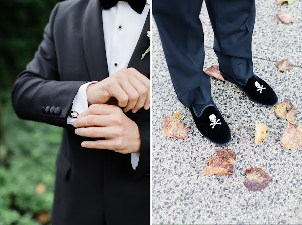 Un detalle que me gusto muchisimo fue el toque de chico malo en el novio, con pañuelo y mocasines de calaveras de Alexander McQueen. (Soy muy fan de McQueen lastima que sus prendas me rasquen el bolsillo jeje)
