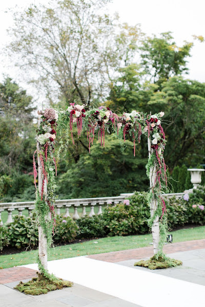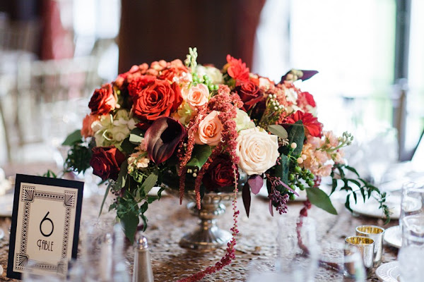Hoy es espectacular la "wedding" que os muestro. Colores de temporada como es el dorado y el marsala, escogido color del año por pantone (podéis ver más en este post). Y con todos los detalles muy cuidados empezando por las flores del ramo con calas negras , dalias de color burdeos y rosas en melocotón, dan ese toque de glamour. Fueron las misma flores utilizadas para el arco de la ceremonia y para se escogió el mismo ramo pero más grande.