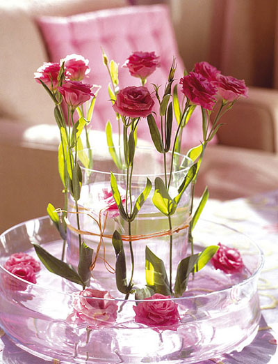 3. Pocas flores en un hermoso recipiente, puede ser también frasco o pecera, se adornan con piedritas, una cinta o moño y lucen elegantes. Menos es más.