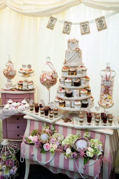 No siempre hay que poner tartas, cupe cakes, etc, quizás es suficiente con que pongas todo tipo de chucherías pero siempre busca la armonía de colores