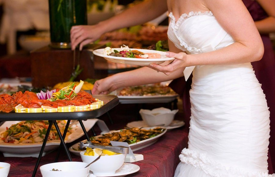 Contras: Puede ser un espectáculo desordenado con invitados pululando en los puestos de comida y perturbando el flujo. La comida se puede enfriar rápidamente y puede ser difícil equilibrar la cantidad de comida con la cantidad de vajilla. Como no hay limitación en la cantidad de veces que un invitado puede comer la misma comida, los platos populares pueden agotarse, decepcionando a muchos invitados, mientras que la comida menos popular puede dejarse casi intacta.