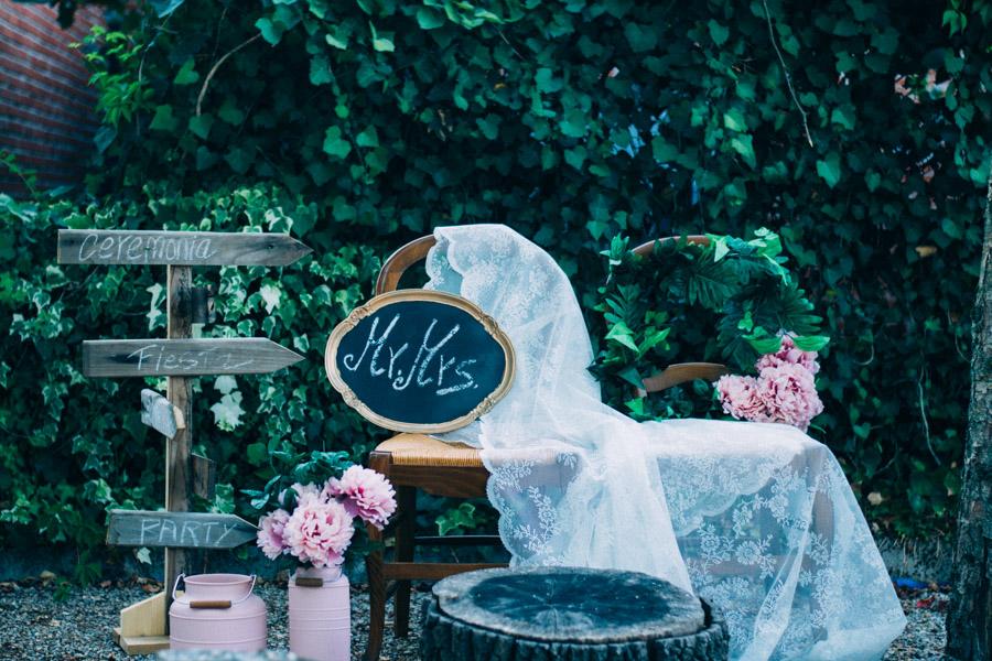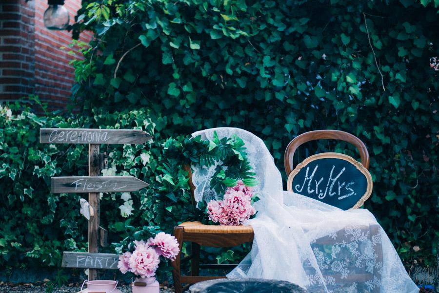 Madera, flores, unas cortinas y visillos, unas sillas especiales, una guirnalda y ya tenemos un rincón para nuestra boda o cualquier tipo de celebración.