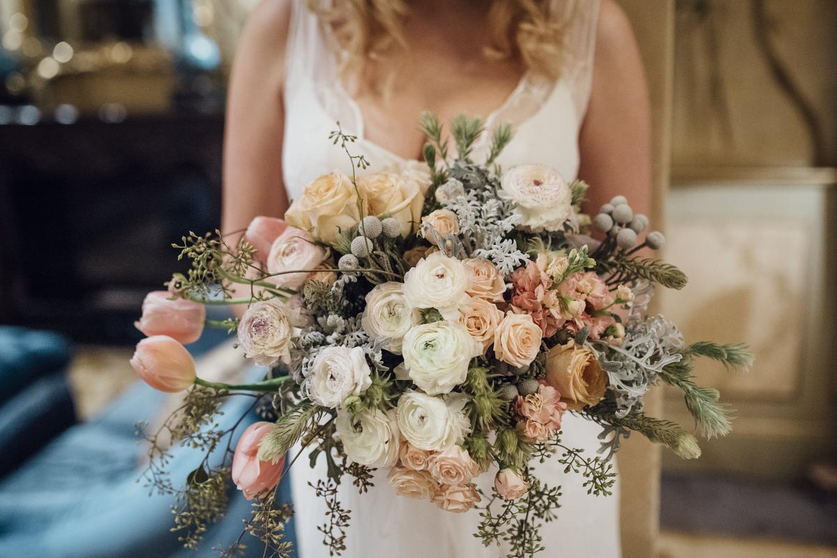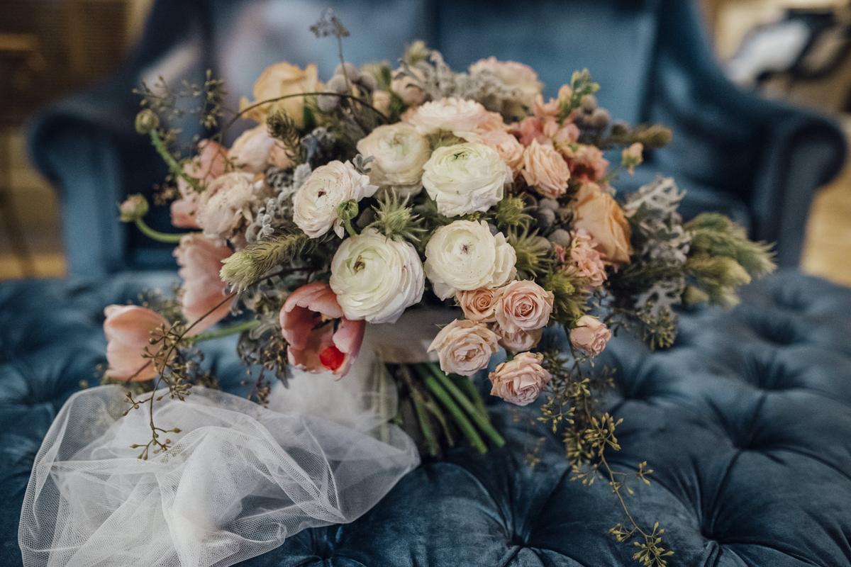 Como guinda a un estilismo de lujo, Natalia de Studio Floral confeccionó elaborados ramos de ranunculus , tulipas, brunias, cineraria marítima , variedades de rosas y flores de eucalypthus. Una vez más supo captar la esencia de nuestra inspiración con sus preciosas flores naturales.