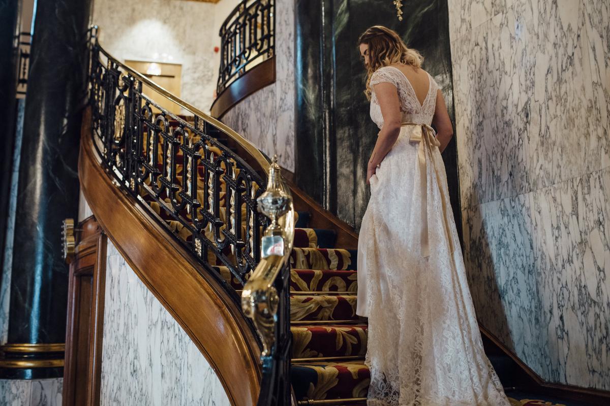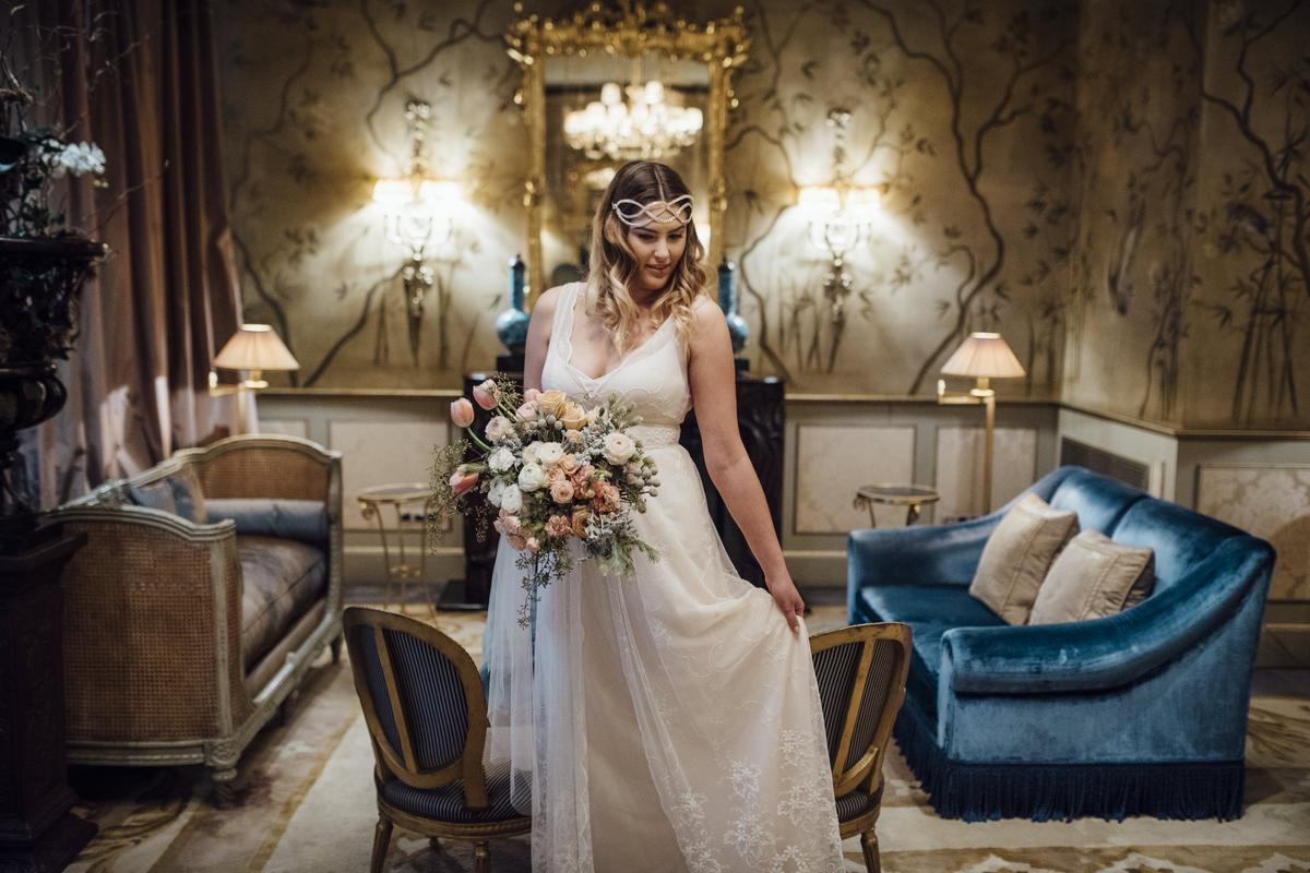 La primera que os queremos mostrar, es la de una novia sofisticada que da el si quiero entre los elaborados tapices y las interminables escaleras del Palace Barcelona.