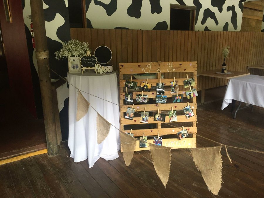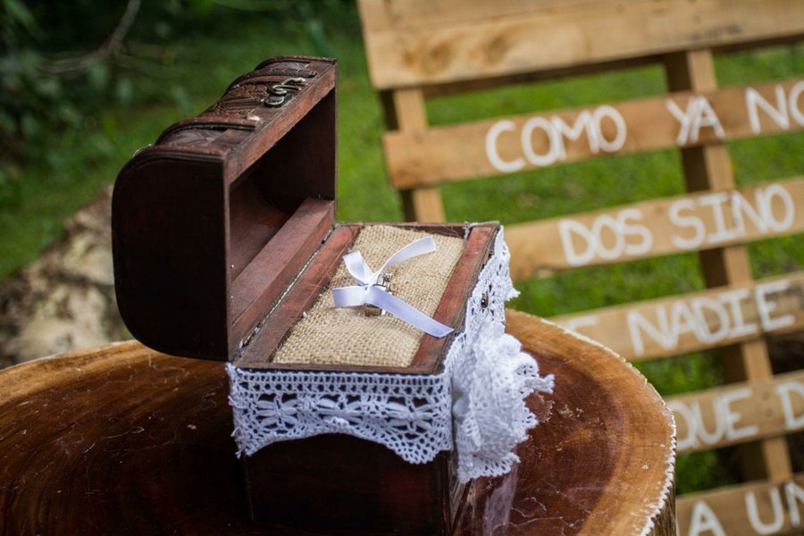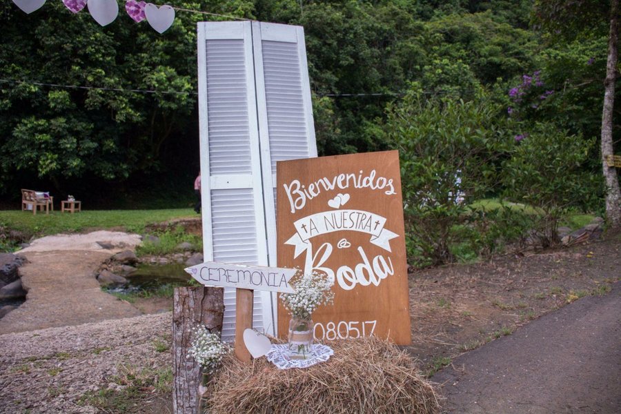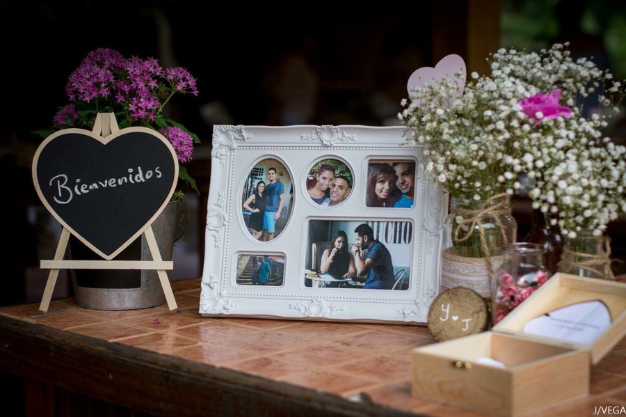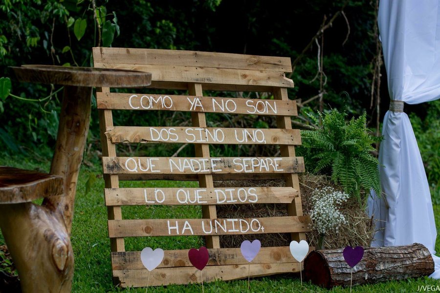 Para ello, comenzó comprando las decoraciones por Internet. Quería una boda sencilla y original. Y gracias a que en su trabajo encontró paletas de madera, le fue aún más fácil. Estas paletas les sirvió para unificarlas y en ellas escribir un texto bíblico y su historia de amor con fotografías. La recepción estaba con un cartel de madera dando la bienvenida y con la fecha de la boda.