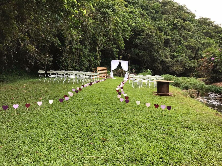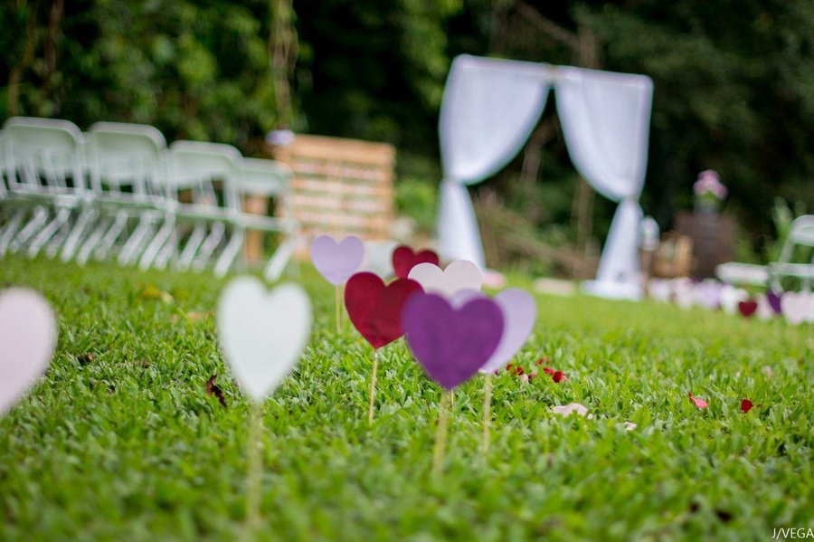 La llegada al altar estaba llena de corazones de papel en diferentes colores que lo hacía más íntima y más bonita.