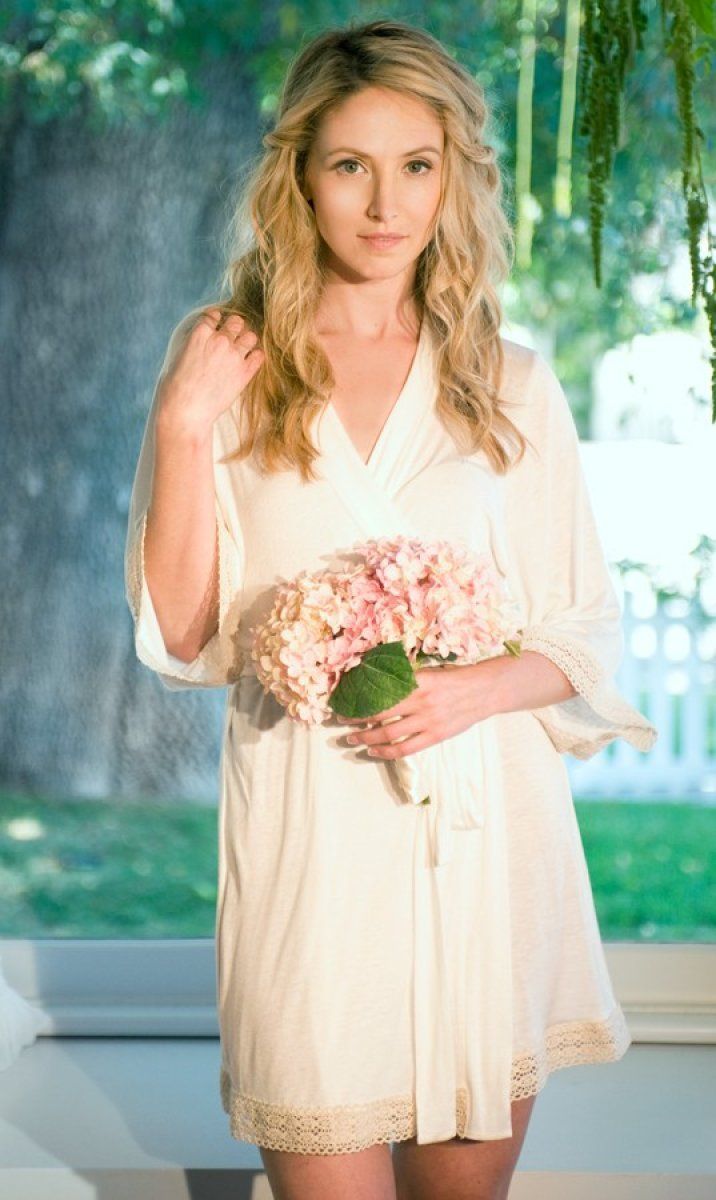 Esta firma posee una amplia variedad de batas o túnicas, en su mayoría elaboradas con tejidos muy finos, ligeros y con ciertas transparencias. El largo dependerá del gusto de la novia, ya que cuenta con modelos más largos de la rodilla, para crear un efecto más sofisticado y elegante, o por encima de ésta, dando un toque más juvenil a la prenda. El encaje vuelve a ser otro de los materiales empleados y las mangas suelen presentar un motivo que les da el toque de estilo, como volantes, puntillas o troquelados.