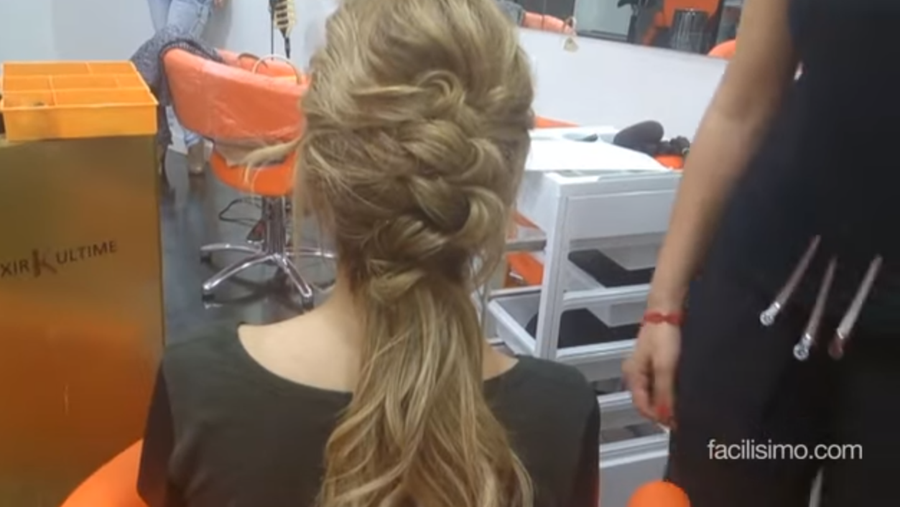 5. Al final, utiliza uno de los dos mechones para hacer el efecto coleta.