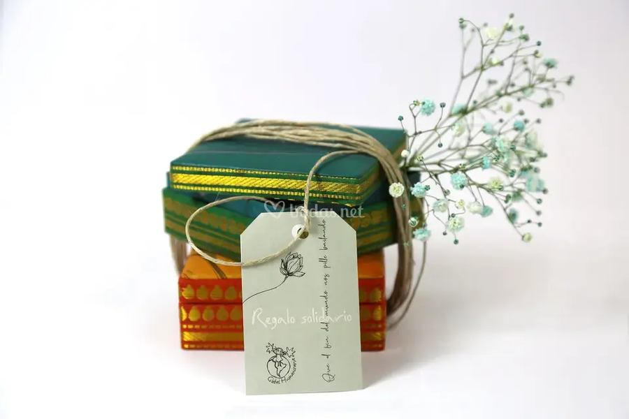 Entre las opciones que presenta Global Humanitaria, encontraréis tarjetas de boda personalizadas o tarjetas en forma de donativo, con los que la ONG podrá adquirir artículos como alimentos, kits escolares o material sanitario. ‘Lo que hicimos fue asignar a cada mesa un donativo en lugar de dar un típico obsequio de boda. Global Humanitaria desde el primer momento nos ayudó con la idea y nos hizo unas tarjetas geniales’, explican Beatriz y Daniel.Otras ideas solidarias van desde la compra de abanicos, jabones o pulseras, para regalar a vuestros invitados y destinar el importe a vuestro proyecto escogido, a proporcionar tanques de agua o libros para la comunidad seleccionada. ‘Decidimos sustituir el detalle a nuestros invitados por bidones de agua para la escuela de Camboya donde tenemos apadrinado a un niño’, comentaban Keka y Vero el día de su boda.