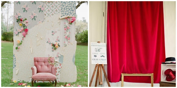 1.- Una tela, una pared con papel pintado, unos marcos o una butaca antigua (o moderna, lo que tengas) y ya está montado! Lo que si os recomendamos es que no sea algo excesivamente estampado, para que quede medianamente bien con todos los invitados. Lo de la pared, igual lo veis mas difícil, pero poniendo una tela de un solo color, unos marcos y gafas, collares de hawaiana etc. que tengais por casa (de carnavales, fiestas...) ya está.