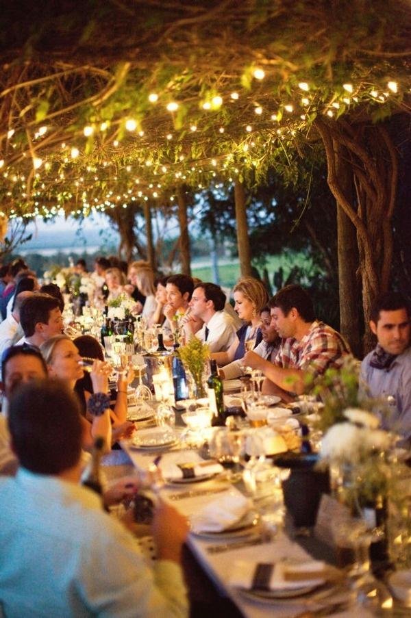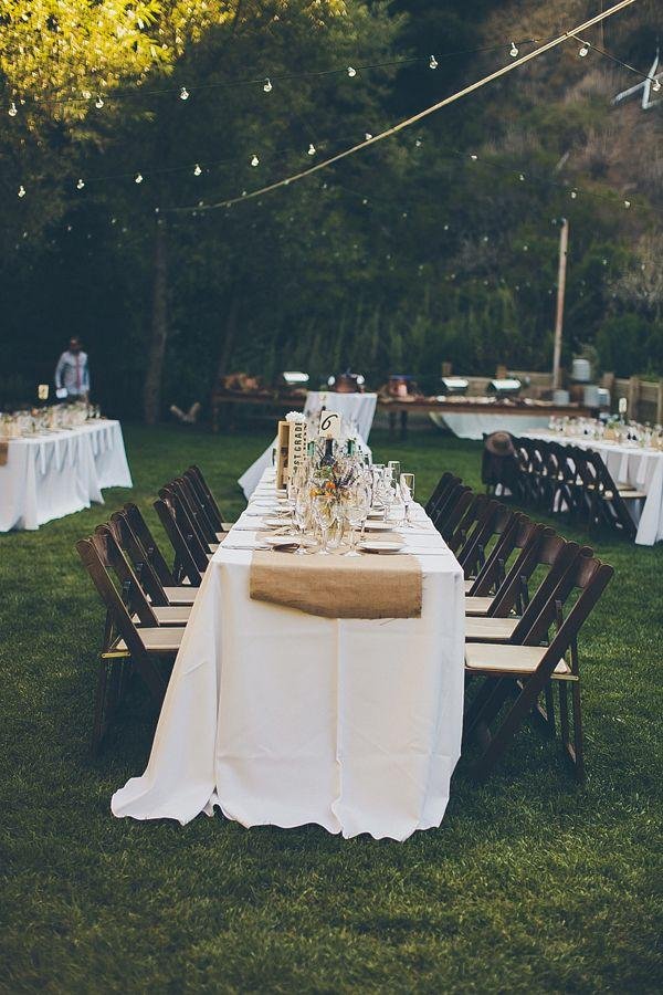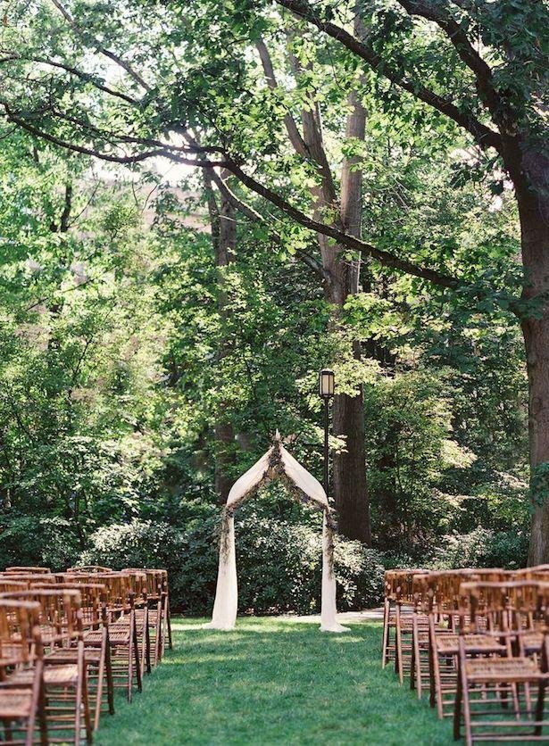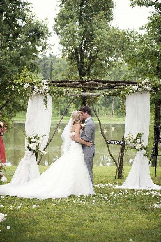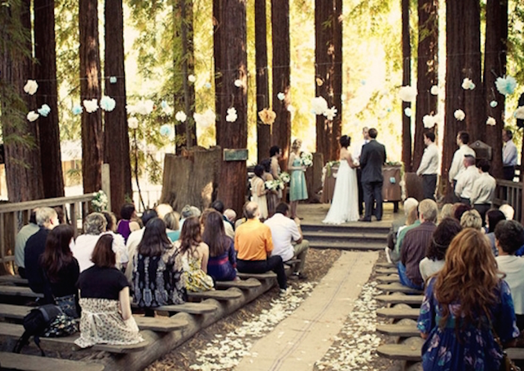 La idea es aprovechar todo lo que el lugar ya posee, para hacerlo lucir bonito y acogedor como adornar los árboles del lugar con organzas o cintas es una excelente idea.