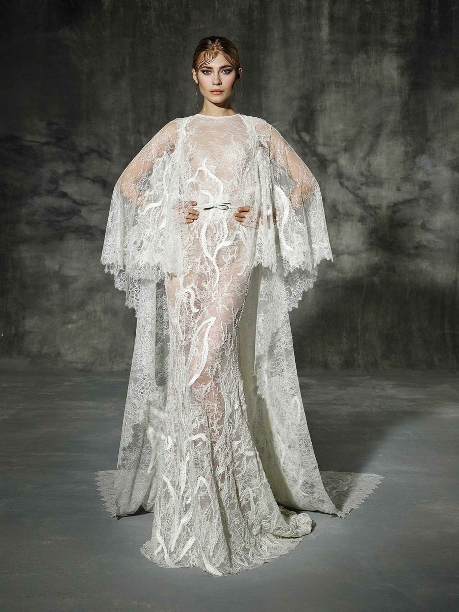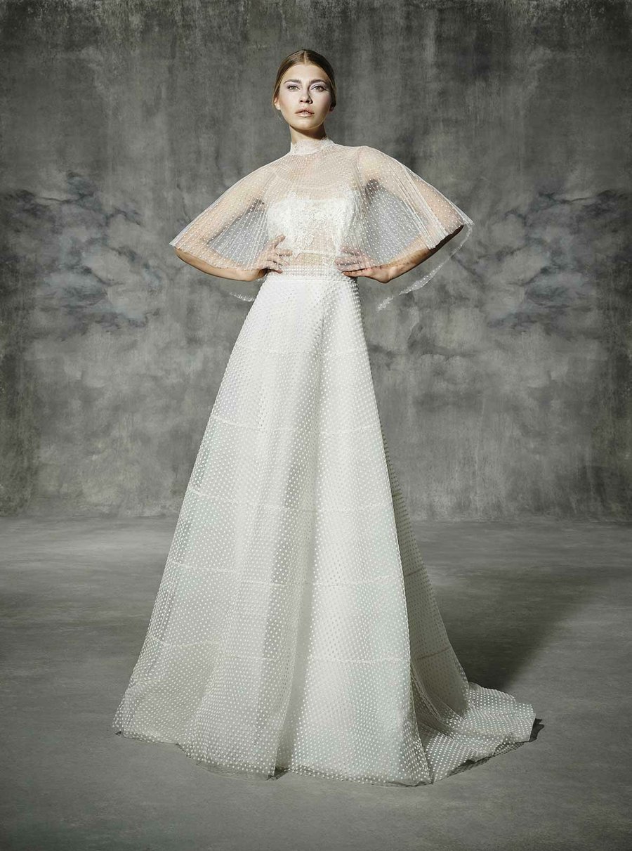 Muchas firmas nupciales no se han resistido a incorporar vestidos de novia con capa. Entre sus diseños., podemos ver todas las versiones: grandes capas, más cortas, de seda, de tul, con encajes, pedrería... Hay para todos los gustos.