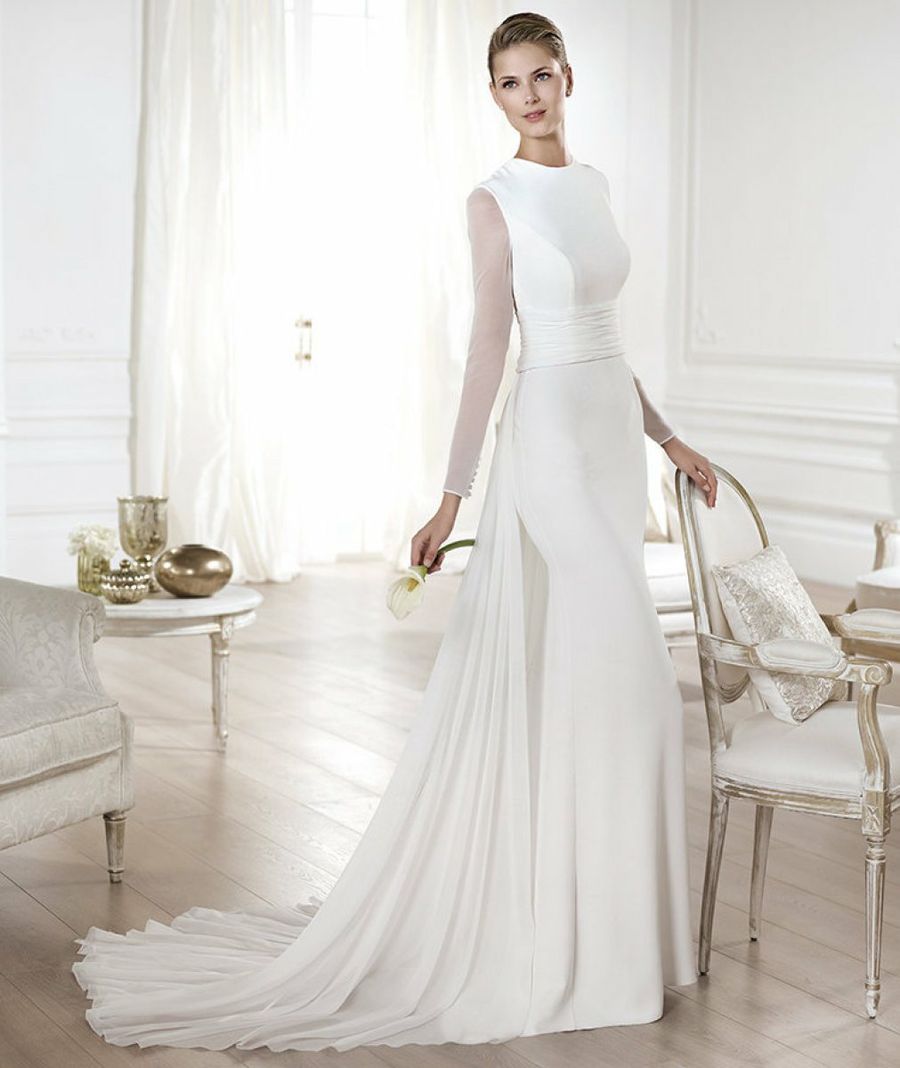 Un look de novia mucho más discreto, que cede el protagonismo a otros detalles, con modelos que dibujan la silueta de la mujer con tejidos lisos, cortes rectos y formas básicas. Aún así, con ellos podemos conseguir un estilo muy sofisticado, tal y como comprobamos con los diseños que hemos encontrado en algunas firmas de novia.