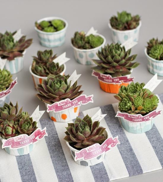 Las suculentas son también una opción muy de actualidad, a la vez de cumplir función decorativa también pueden formar parte como detalle para los invitados