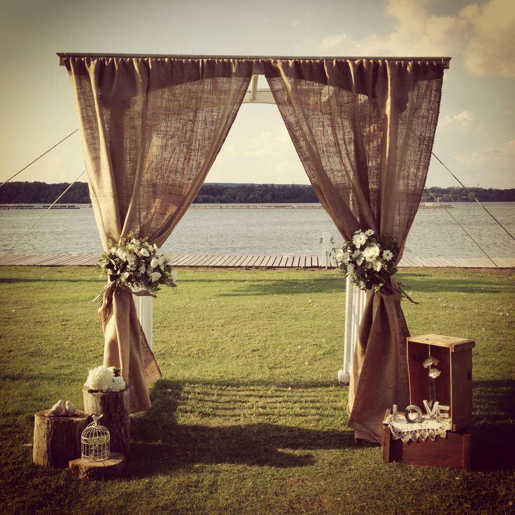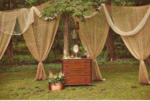 Podemos crear un bonito altar para una ceremonia civil, usando la tela como cortinas.