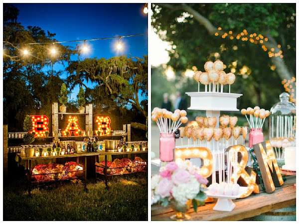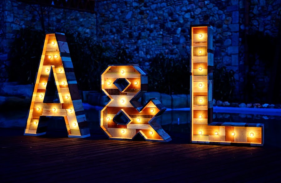 Podéis utilizar vuestras iniciales o incluso palabras como LOVE o MR & MRS para iluminar la entrada a la ceremonia o al salón, el aperitivo, el baile, o incluso pueden ser un fondo estupendísimo para vuestro photocall.