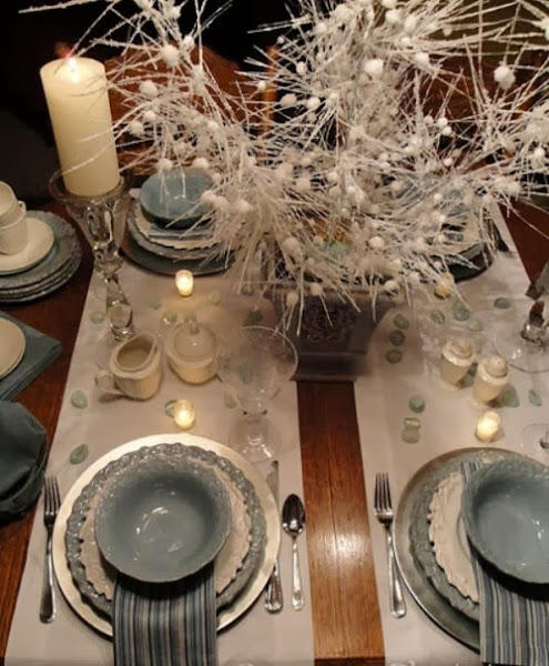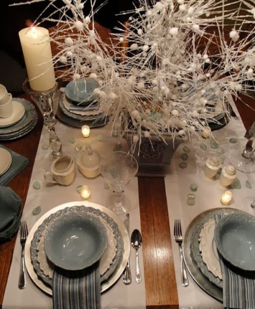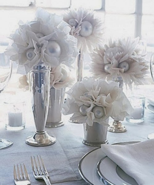 La decoración la he cogido de mesas de boda, pero haciendo los centros un poco mas pequeños valen perfectamente para las casas.