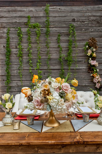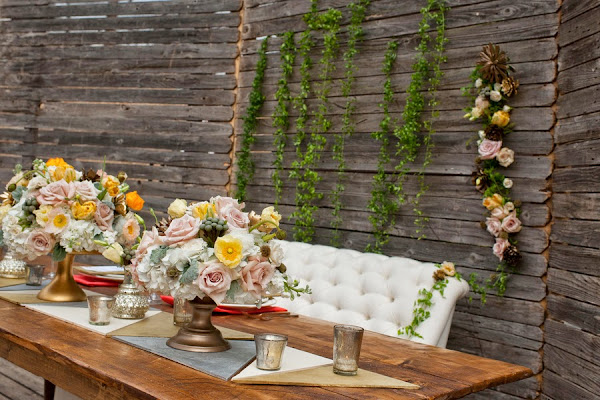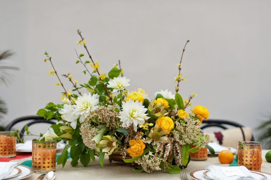 Tenéis dos opciones, pero las dos en tonos amarillos, blancos y algo de salmón. Cobra importancia la decoración con flores naturales creando centros vistosos y los manteles originales, que podéis elegir en texturas distintas a lo que estamos acostumbrados como por ejemplo arpillería o lana o crear triangulos con cartón de diferentes tonos.
